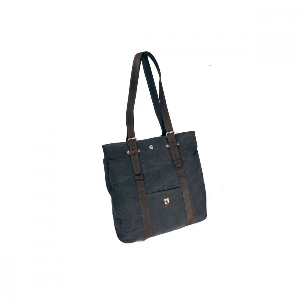 Materiale: 55% canapa / 45% cotone bio, inserti in cuoio.