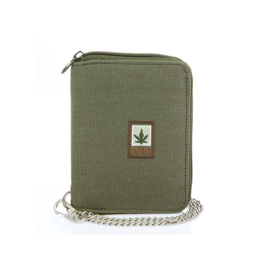 PORTAFOGLIO CON ZIP E CATENA in cotone bio e canapa del Myanmar