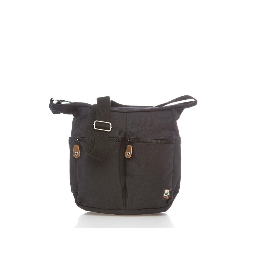 BORSA A TRACOLLA 2 TASCHE in cotone indiano, tessuto traspirante di canapa peruviana ed inserti in cuoio di Chicago