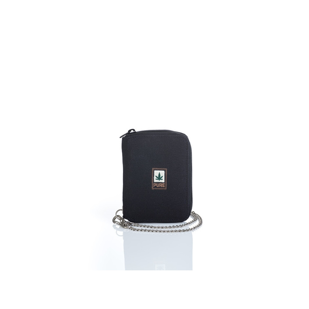 PORTAFOGLIO CON ZIP E CATENA in cotone bio e canapa del Myanmar