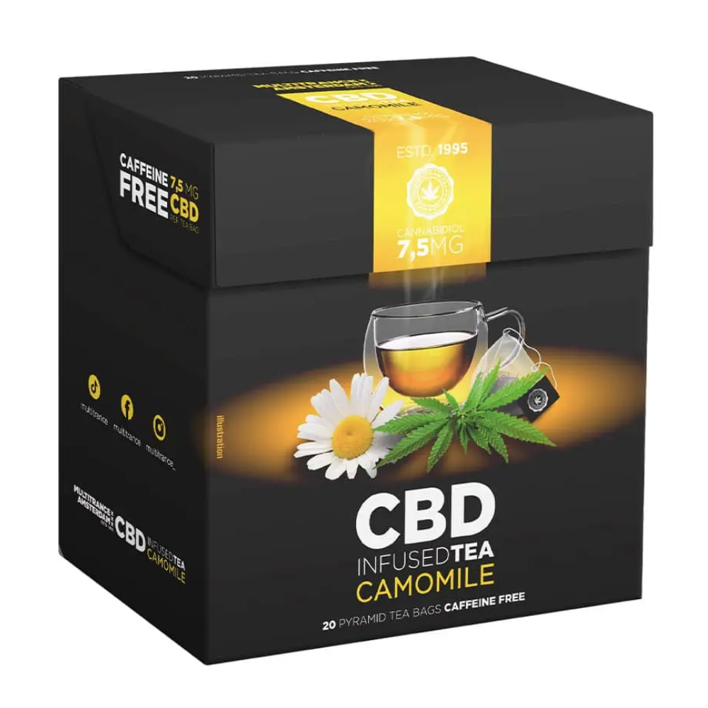 Il tè alla camomilla con 7,5 mg di CBD è una bevanda rilassante perfetta per distendersi dopo una lunga giornata. Ogni bustina contiene fiori delicati di camomilla e 7,5 mg di CBD puro, offrendo un effetto calmante e lenitivo.